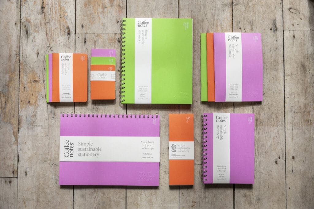 With a background in paper, printing, and publishing, Sarah Downey, founder of Coffenotes, created the brand as a sister company to Epic Print, which creates paper print and packaging products. Epic Print had worked with paper maker and innovator, James Cropper for a number of years, but when it pioneered its CupCycling process, transforming used disposable coffee cups into paper, Sarah’s interest was piqued and she began working with James Cropper, through Epic, to utilise this new kind of paper. Seeing its potential, she then founded the Coffeenotes brand to really maximise this innovation, creating premium quality notebooks, with fountainpen-friendly paper, made from your flat white cup that got tossed in the bin.