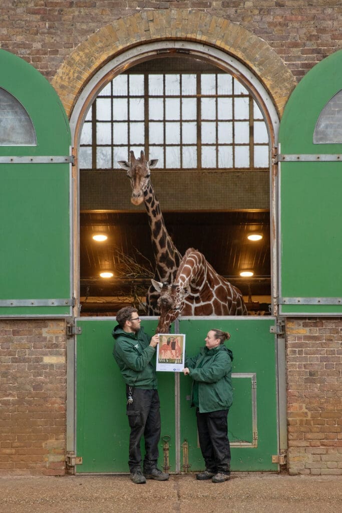 The artwork spotlights the Zoo’s historic Giraffe House – the oldest building at London Zoo still used for its original purpose. Designed in 1836 by Decimus Burton, the purpose-built structure was the first of its kind and went on to influence giraffe house design worldwide. Visible from the road and beloved by visitors and passers-by alike, it remains one of the Zoo’s most recognisable landmarks.