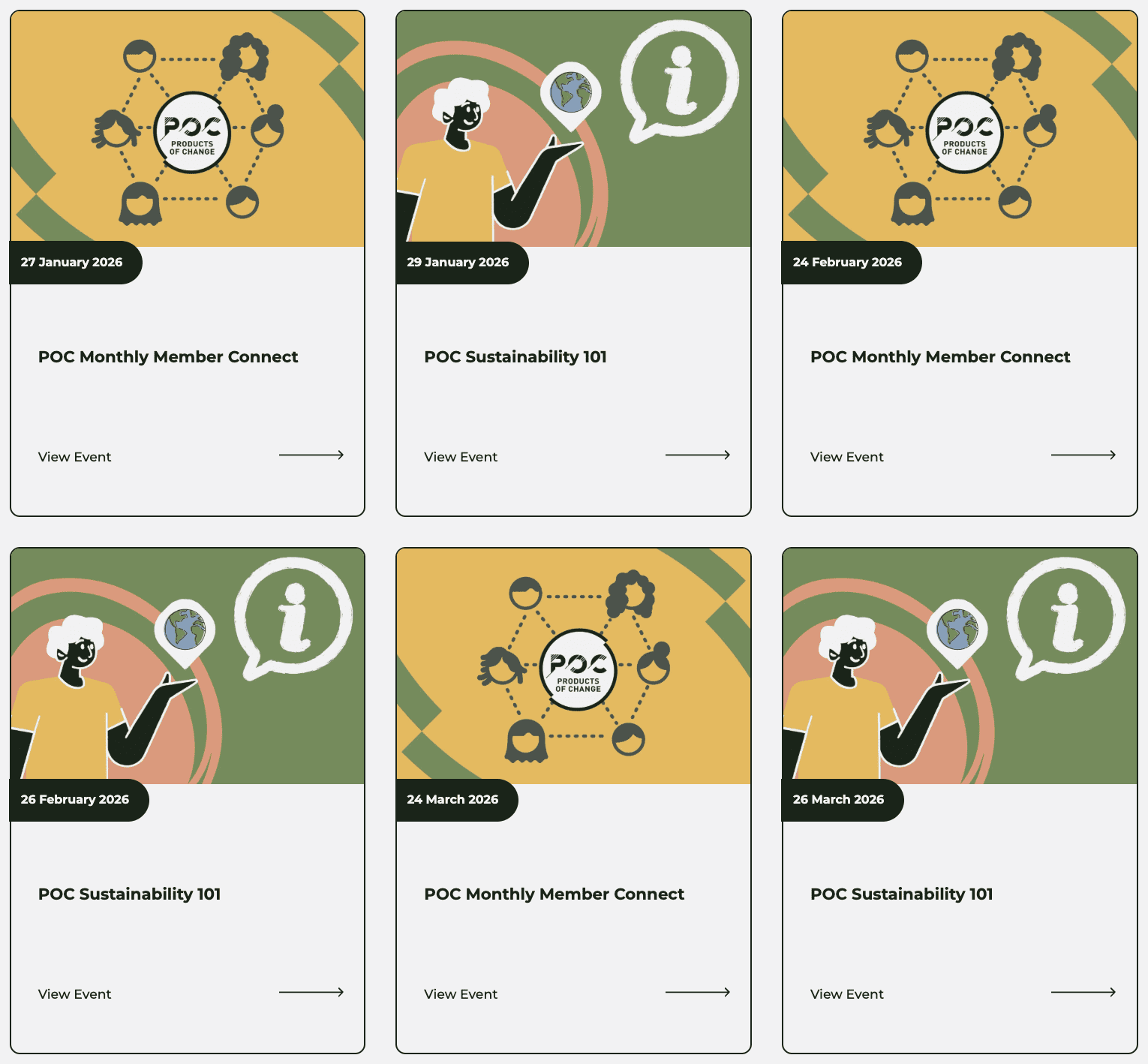 The Products of Change 2026 event calendar is already bulging as we have now booked in all the dates and times for our monthly Member Connect and Sustainability 101 sessions as well as the 2026 Welcome meetings.